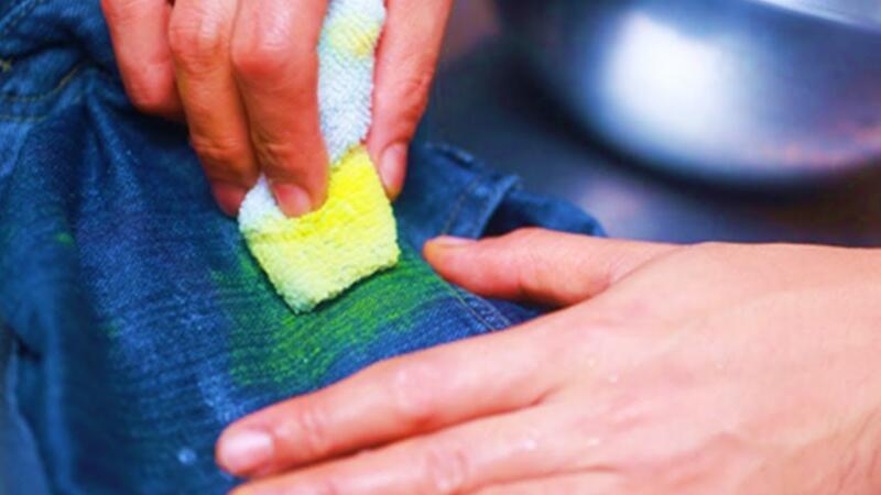 4. يوضع مزيل البقع إذا لزم الأمر، فتغسل قطعة الملابس.