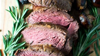 يترك اللحم لمدة 15 دقيقة ليبرد قبل أن يقطع.