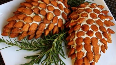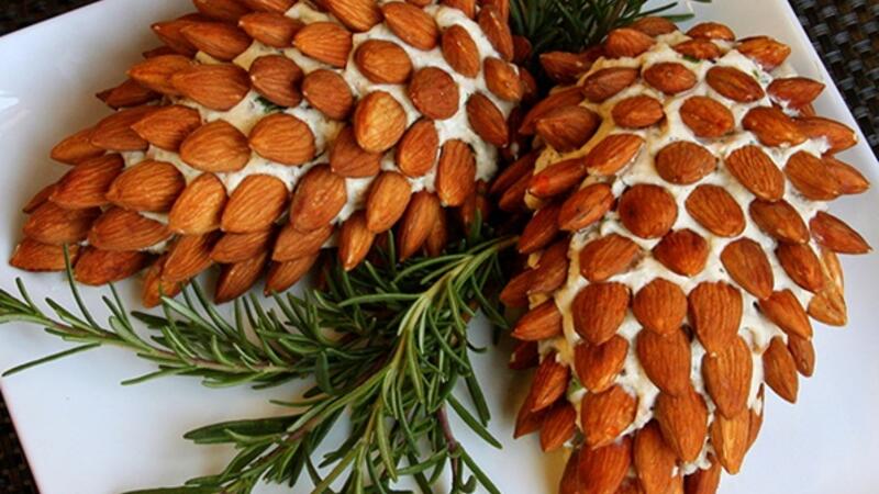 يشكّل خليط الجبن الى كوزان من الصنوبر، توضع حبات اللوز في الجبنة بزاوية طفيفة لتشكل صفوفا كإبر الصنوبر. تزين بأغصان الروزماري.