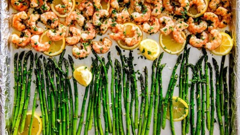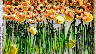 وصفة الجمبري بالثوم والليمون والهليون لوجبة خفيفة أو طبق جانبي غني بالنكهات