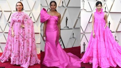ولمع بريق معظم نجمات هوليوود بفساتين ناعمة بتدرجات اللون الزهري وكانت الإطلالات ساحرة بلا شك، ومن أكثر الفساتين جاذبية كان من نصيب " كاسي موسغريفيس" التي اختارت اللون الزهري الفاتح وصولاً إلى "هيلين ميران" التي اختارت فستانها بدرجة أغمق منه.