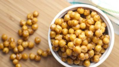 يُمزج زيت الزيتون والعسل والقرفة والملح في وعاء. يوضع الحمص الساخن في الخليط ويغلف جيدا. يفرد مرة أخرى على الصينية.