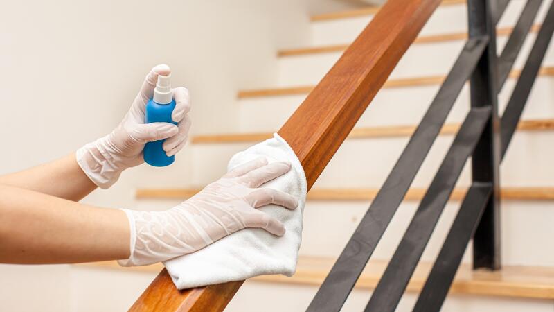 1- لتنظيف الأسطح اختاري منتجات مثل المناديل أو البخاخات أو المركزات المشار إليها بعبارة "مطهر" على أن تحتوي أكثر من 60% من الإيثانول.