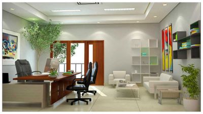 • يفضّل استعمال الألوان الحياديّة، كالأبيض أو البيج أو الكريمي، التي تشي بأجواء العمل الجدّية، وتمنح شعورًا بالراحة، مع تجنّب تلك الداكنة. كما يُمكن وضع ملصق من "الفينيل"، يرمز إلى طبيعة العمل، على جزء من أحد الجدران.