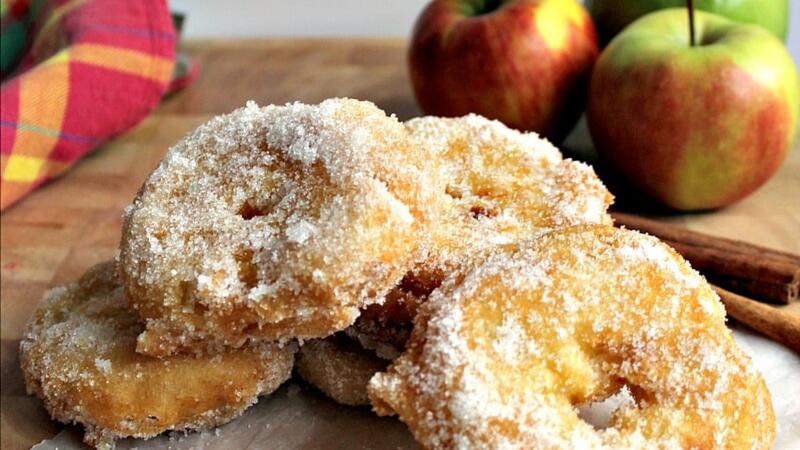 اغمسي حلقات التفاح في خليط الدقي والبيض، ثم اقليها في زيت غزير حتى يُصبح لونها ذهبيًا.