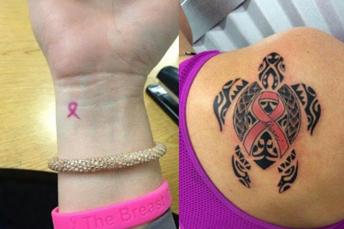 يمكنك أن تضيفي إلى الرسومات زهور أو فراشات، أو اعتمدي رمز السلحفاة مع رمز سرطان الثدي الوردي الذي يدل على بطئ انتشار هذا المرض الخبيث.