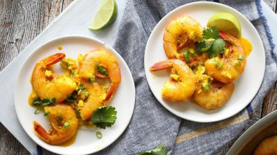 روبيان جامبو مشوي بالكركم نقدم لكم طبق مأكولات بحرية مستوحى من الشرق الأوسط وهو خفيف ولذيذ للشواء. الروبيان المشوي بالكركم وصفة سهلة يستمتع بها جميع أفراد عائلتك. هذه الوصفة خالية من الغلوتين ومنتجات الألبان والجوز والبيض وفول الصويا وتناسب حمية باليو.