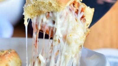 تخلط كمية من جبن البارميزان والتوابل الإيطالي وترش على كل قطعة خبز.