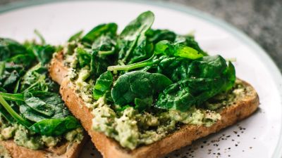 - لتجميع السلطة في ساندويتش، يحمص الخبز وتضاف أي الخضروات أو الخضار التي تريدها. بعض الخيارات الرائعة هي السبانخ والخس والخيار والطماطم والفلفل والجرجير. توضع كمية من سلطة البيض والأفوكادو على الخبز المحمص وتقدم.