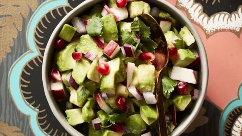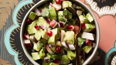 سلطة الافوكادو والكزبرة، سلطة شهية وصيفية مناسبة للاحتفالات أيضا...