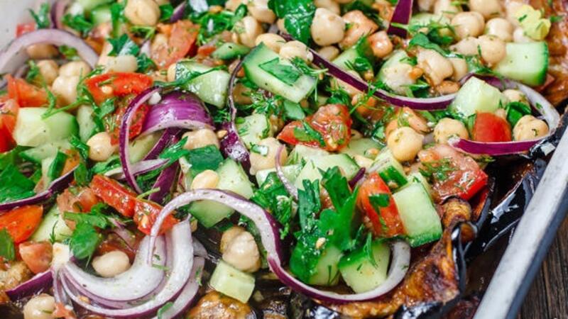 سلطة الفلاح مستوحاة من حوض البحر الابيض المتوسط وتحتوي على الحمص والخضروات المفرومة والباذنجان المقلي وصلصة الثوم الخفيفة.
