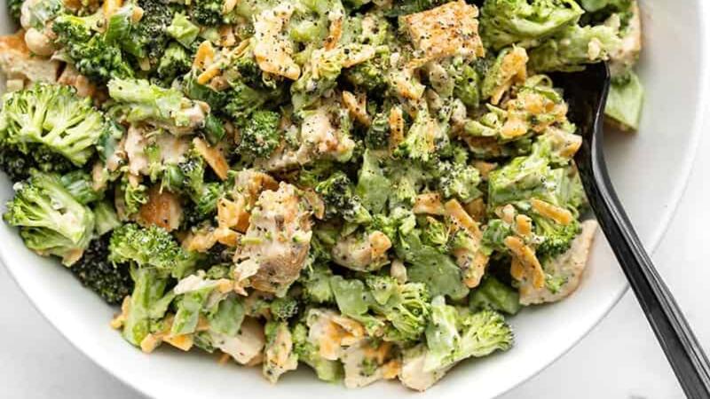 سلطة البروكلي والدجاج بجبن التشيدر هي سلطة طازجة رائعة يمكن تناولها بمفردها أو تحويلها إلى عدة أفكار غداء سهلة ومختلفة!
