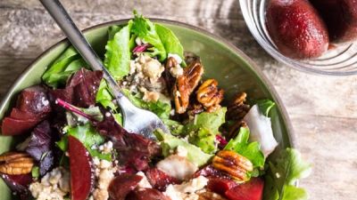 سلطة البنجر والفيتا سلطة طبيعية شهية ومناسبة للحفلات.