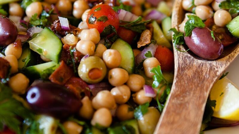 سلطة الحمص المتوسطية، سلطة شهية ومتنوعة تحتوي على خيرات حوض البحر الأبيض المتوسط
