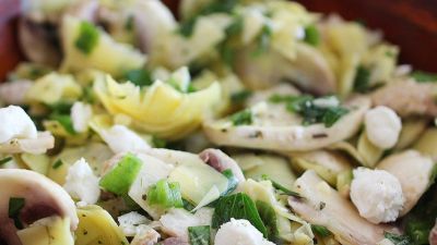 ضعي خليط الخرشوف والمشروم وقلبي مع التتبيلة.
