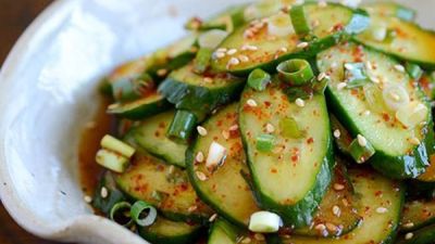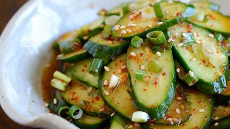 هل تحب الاكل الحار، لما لا تجرب سلطة الخيار الكورية، طبق جانبي مثالي ويساعد على خفض الوزن.