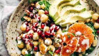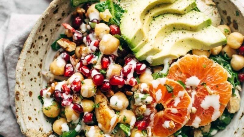 سلطة الدجاج بالبرتقال والحمص، سلطة شتوية شهية وغنية بالمكونات المغذية.
