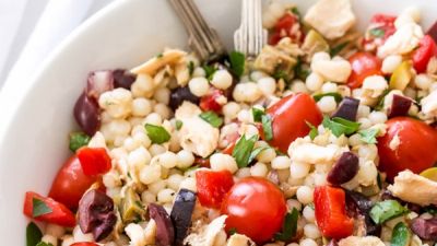 تعلمي صنع سلطة مفيدة وهامة بالسلمون والكسكسي المغربي لذيذة جدا!