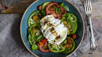 طريقة لتحضير سطلة الطماطم بجبنة الموزاريلا.