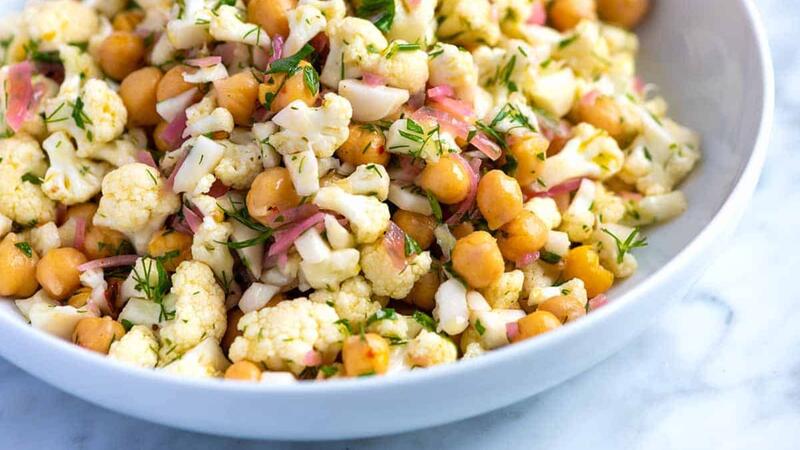سلطة القرنبيط مع الحمص الخفيفة والشهية ..