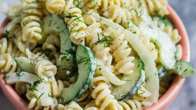 سلطة المعكرونة بالخيار والليمون وصفة منعشة في الطقس الحار..