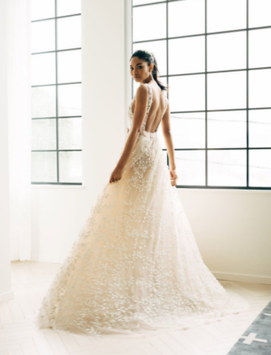 ومن نفس التشكيلة، ارتدت عارضة أزياء فيكتوريا سيكريت، فستانًا حالمًا يتشابه إلى حد كبير مع الفستان الأول، ولكن تزداد فيه تطريزات الورود البيضاء، كما أنه مزين بحزام وردي ناعم.