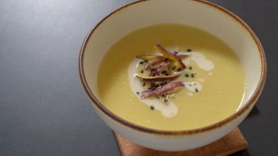 • يحمر البصل في الزبد في إناء متوسط حتي يصير لونه ذهبي.