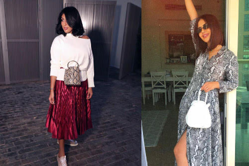 ومن الأمور أيضاً التي تخطف الأنظار بمجرد تصفح صور مدونات الموضة وهن يرتدين نقشة الثعبان، بأن بعضهن فضلن الاعتماد على هذه الطبعة من خلال الاكسسوار مثل ارتداء حذاء أو حقيبة من هذه النقشة.