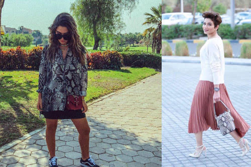 تعد نقشة جلد الثعبان من النقشات الشائعة بقوة هذا العام، إلا أن بعض السيدات تشعر بصعوبة في طريقة تنسيقها في الإطلالات اليومية، لهذا نقدم لكم بالصور بعض الطرق الأنيقة والجذابة لكيفية إدخال هذه النقشات في ستايلك العملي والرسمي على طريقة مدونات الموضة مثل روان بن حسين وفرح الهادي.