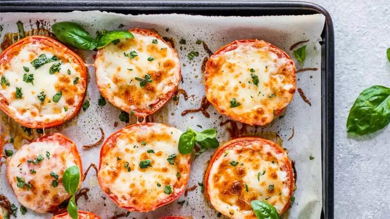 الطماطم المخبوزة هي طبق جانبي سريع للغاية أو فاتح شهية لأي مناسبة! هذه الطماطم المحمصة بالفرن مع جبنة الموزاريلا والبارميزان بسيطة للغاية ولكنها لذيذة بشكل لا يصدق.