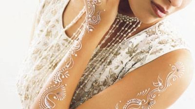 الحناء البيضاء هي رسومات حناء جميلة ترسم على يد واحدة، باستثناء أنها بيضاء اللون وليست بنية أو سوداء كالمعتاد. وبالاعتماد على المواد المستخدمة، يمكن أن تدوم من خمسة أيام إلى أسبوع على الجسد.