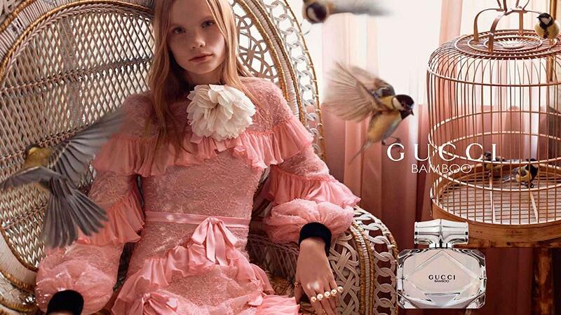 عطر غوتشي بامبو باطلالة جديدة. بعد أن قامت النجمة غال غادوت، بطلة "وندر وومن" بإطلاق الحملة السابقة، وتأتي الحملة الجديدة لتحقق رؤية اليساندرو ميشيل، عن طريق اختيار وجه اكثر انسجاما مع الاصدار الجديد من عطر "بامبو" من غوتشي. وتظهر عارضة الازياء بولينا اوغانيشيفيا في الصور الدعائية الاولى وهي ترتدي فستانا ورديا أنثويا. ومحاطة بالطيور بينما تجلس على كرسي الطاووس.