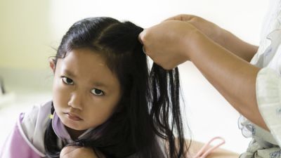 4- استخدام فرشاة شعر طفل مصاب بالقمل .
