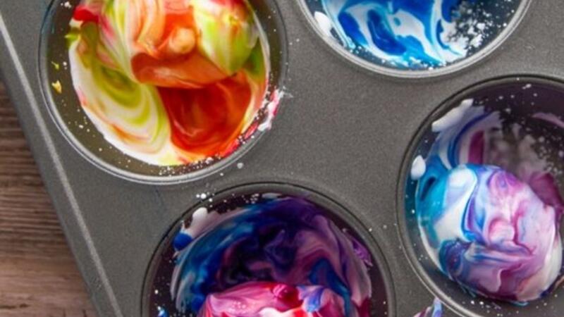 تعلمي تزيين البيض المسلوق مع هذه الفكرة الذكية. بدلا من استخدام الخل، يمكن لكريم الحلاقة الرغوية ان تساعدك في الحصول على تمازج لوني مثالي.