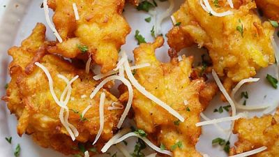 باستخدام ملعقة، توضع ملاعق كبيرة من خليط القرع برفق في الزيت الساخن. يقلى على دفعات على كلا الجانبين حتى يتحول لونها الى بني مائل الى الذهبي وتنضج من الداخل. ترفع من الزيت باستخدام المصفاة وتنقل الى طبق عليه ورق نشاف. تقدم ساخنة مع صلصة الفلفل الحار التايلاندية الحلوة.