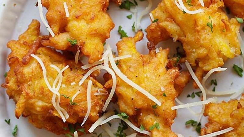 يخلط اليقطين والدقيق والبيض والحليب والجبن، ومسحوق الخبز والملح والفلفل في وعاء كبير. يحرك المزيج حتى يمتزج جيدا. يجب ان يكون الخليط بالكاد مترابطا معا، وليس مائيا.