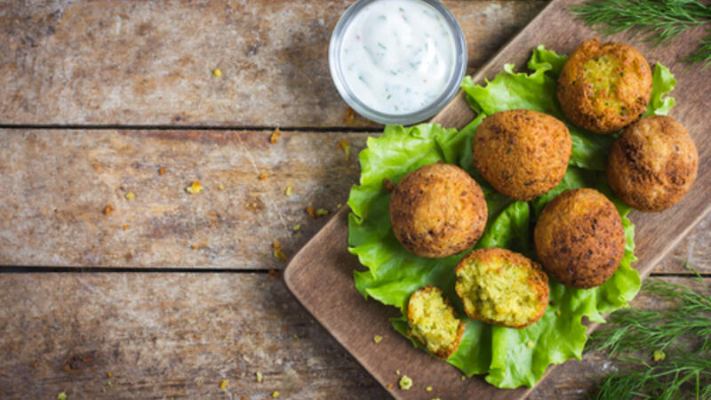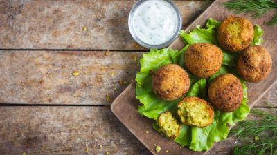 - يحمى الزيت في مقلاه عميقة وتقلى الفلافل بالطريقة التقليدية.