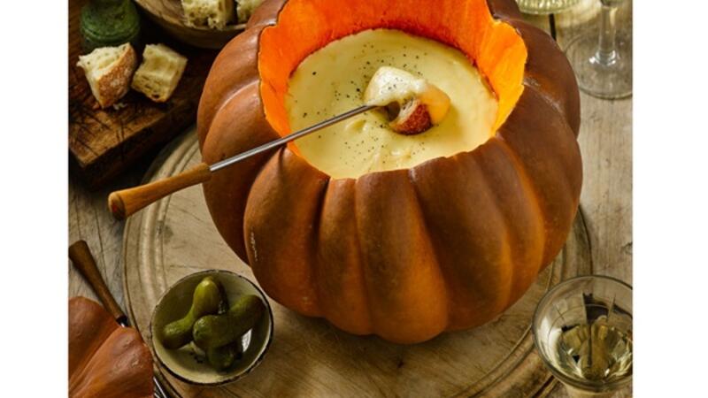 تصب الفوندو في القرعة وتتبل بالفلفل الأسود وتقدم مع قطع الخبز.