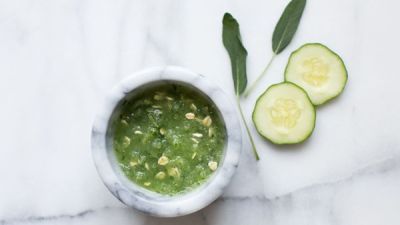 قناع الخيار والشوفان وكلاهما مضادان للالتهابات، بينما يعتبر اللبن الزبادي من أسهل الطرق وأكثرها فعالية لتقشير البشرة بطريقة طبيعية. تحتوي الميرامية على اليوروسوليك الذي يزيل بشكل طبيعي خلايا الجلد الميتة مع توفير فيتامين (أ) والكالسيوم.