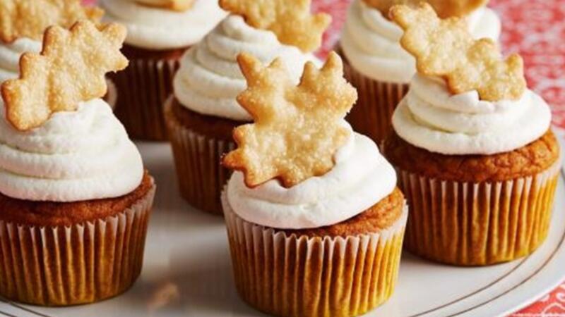 زيني وجه الكب كيك بالكريم شانتيه وتوابل فطيرة اليقطين ثم قدميه.