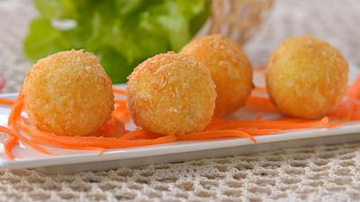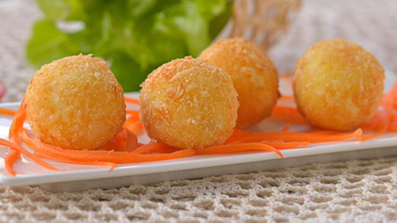 4. شكلي البطاطس على شكل كور، ثم اغمسيها في البقسماط.