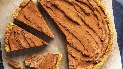 3. يوزّع خليط الحشو فوق طبقة البسكويت، بواسطة الملعقة، ويسوى. ثم، تبرّد "الترافل" لساعات عدة، أو طوال الليل، حتى يستقر الحشو، وتنثر بودرة الكاكاو على سطحها، قبل التقديم.