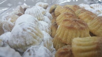 - ثم ندخل حبات الكعك إلى الفرن ونخبزها لمدّة ربع ساعة أو عشرين دقيقة، ونحمّر وجهها ليصبح ذهبياً.