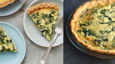 تعلمي معنا طريقة عمل كيش السبانخ بالمشروم وجبن الفيتا، طبق جانبي من المطبخ اليوناني..