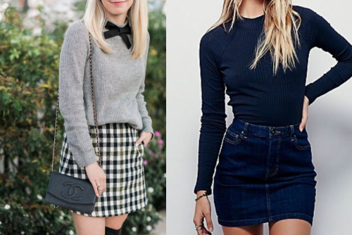 2-التنورة القصيرة سواء كانت سادة أو منقوشة، يليق بها الجاكيتات الطويلة والقصيرة والبليزر، والبلوزات والقمصان، لكن احرصي أن تختاري التنانير المستقيمة إذا كنتِ ممتلئة، واختاري تلك المنفوشة في حال كنتِ نحيفة حتى تعطي جسدك بعض الامتلاء.