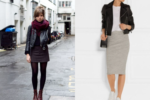 1-الجاكيت الجلد يتناسب مع جميع أطوال التنانير، لذلك لا تترددي في اعتماده مع تنورتك مهما كانت خامتها، وكوني على يقين أنه سيجعل إطلالتك أكثر أناقة وشباب.