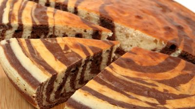 ملاحظة: يمكنك استبدال الكاكاو بألوان الطعام لتحصلي على كيكة التايجر الملونة.