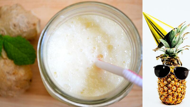 عندما يكون الطقس حارًا ، قومي بخلط الأناناس بالزنجبيل لعمل مشروب اللاسي الهندي لتبريدك وإعطائك دفعة من الانتعاش.
