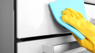 1- قبل التنظيف إحرصي على أن يكون الفرن باردًا، وقومي بتغطية أرضيات المطبخ بالقماش القديم أو الورق، لكي لا تتسخ أثناء التنظيف.
