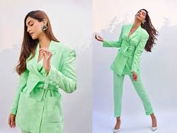 دائمًا ما تسبق الموضة، ظهرت سونام ببدلة باللون الأخضر الفاتح، وأكملت إطلالاتها بحذاء أبيض مميز.